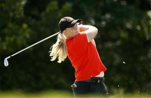 She dropped a shot on the 11th bur regained lost ground with a birdie on the 15th.