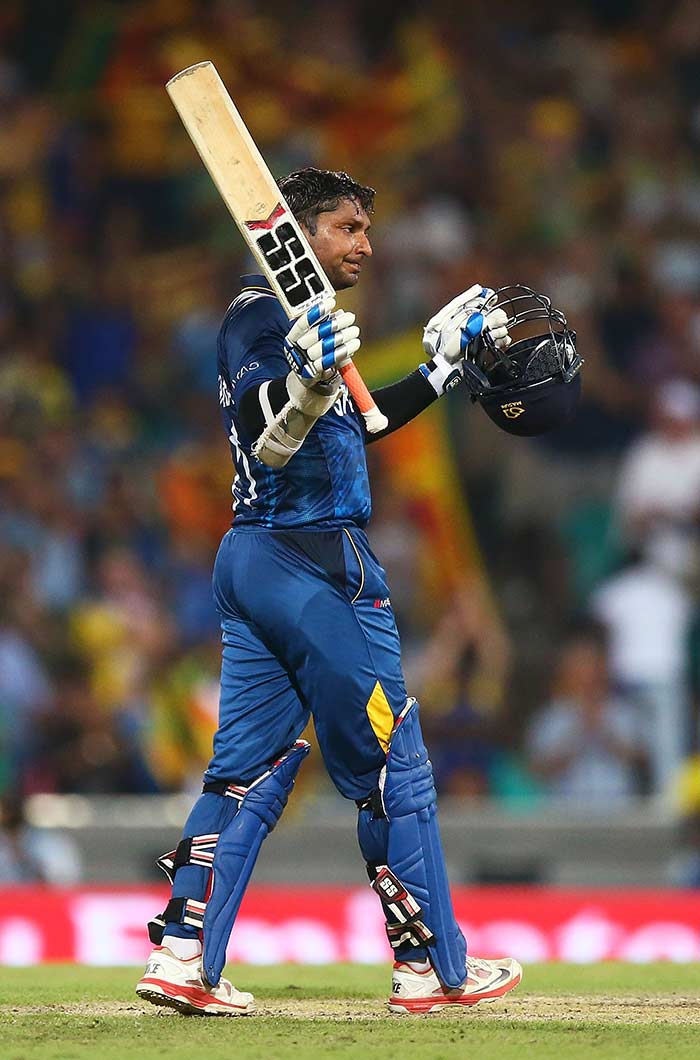Kumar Sangakkara went past 14,000 ODI runs and also became the first player to score three consecutive World Cup tons.