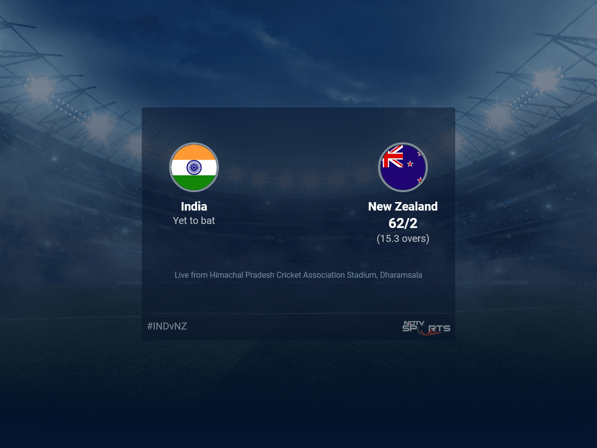 A dedicated team of experts bring you live score, live cricket score, live match update on Sports.NDTV.com. After 15.3 overs, New Zealand are 62/2. The live updates of India vs New Zealand scorecard is also available. It is the perfect platform to follow your favourite teams in ICC Cricket World Cup 2023. Keep a track on your favourite batsmen and bowlers through ICC Cricket World Cup 2023 today match, ball by ball commentary, India vs New Zealand, India vs New Zealand live score, India vs New Zealand scorecard. Follow the excitement of the ICC Cricket World Cup 2023 on Sports.NDTV.com as you can follow live match updates and live cricket score through our platform.