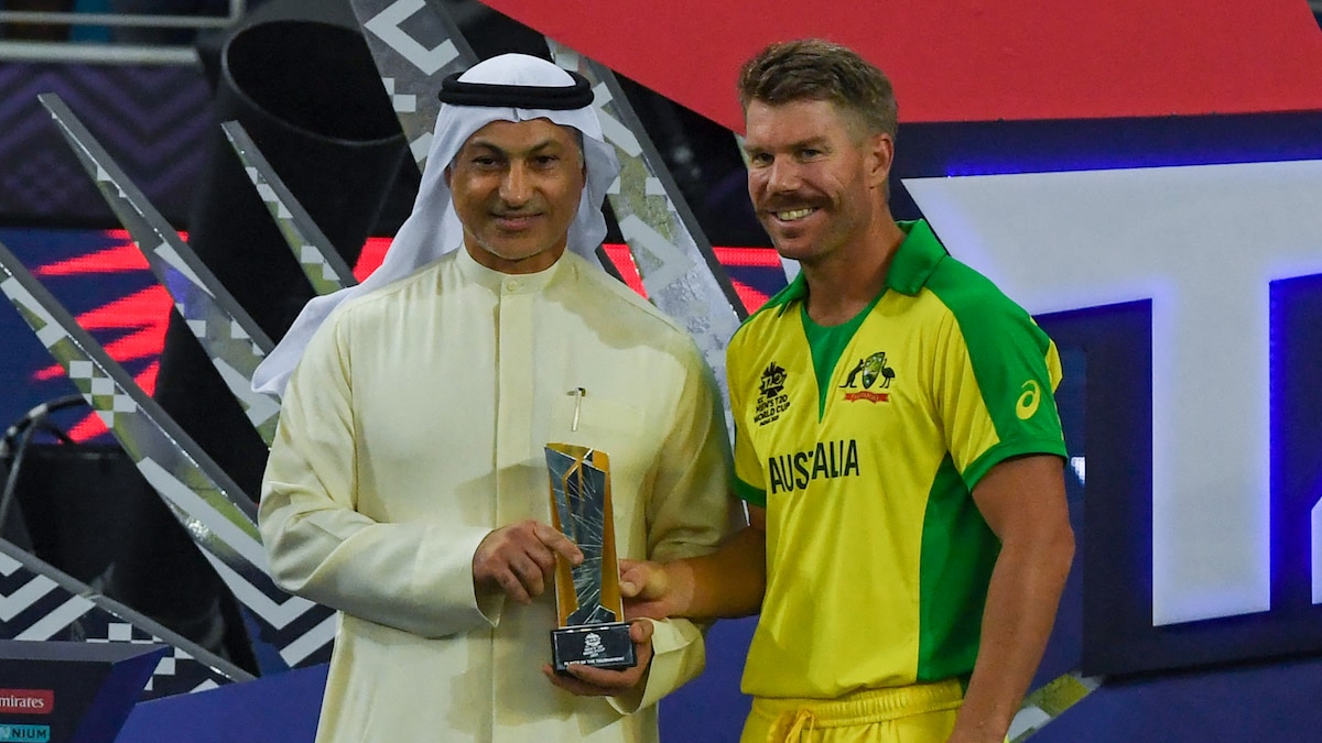 Warner was adjudged 'Player Of The Tournament' for amassing 289 runs in the tournament, including an all-important knock of 53 off just 38 balls against New Zealand in the final. Australia defeated New Zealand by 8 wickets in the final at the Dubai International Cricket Stadium.