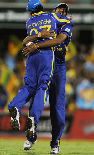 Not that it was straightforward. Hussey's run-a-ball 74 nearly snatched victory for Australia. They needed 10 runs from the final over, bowled by Kulasekara, but Hussey holed out to long-off from the first ball of it and Sri Lanka celebrated. They had been on top early, when Australia were 3 for 26 after Malinga and Kulasekara troubled the top order, but then Australia fought back.
