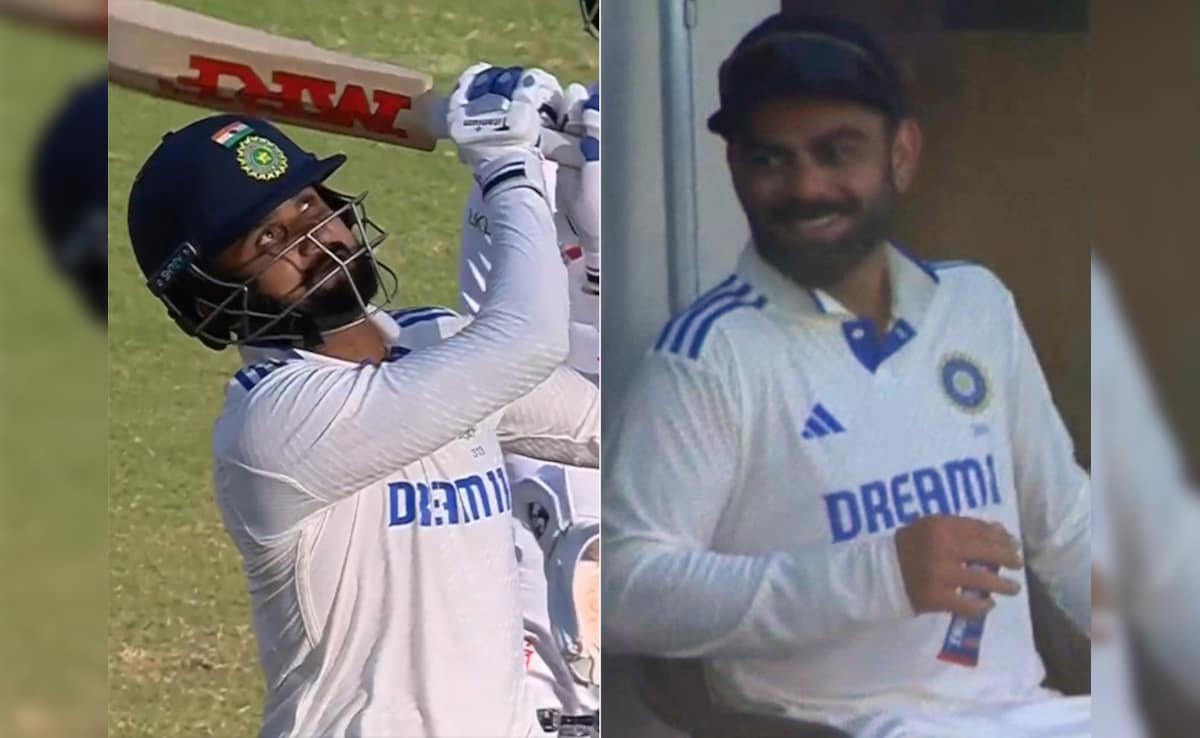 The Indian cricket team produced an impressive batting display as the Rohit Sharma-led side broke five records on Day 4 of the second Test match against Bangladesh in Kanpur on Monday. Rohit Sharma, KL Rahul and Yashasvi Jaiswal all produced quickfire knocks but it was a couple of sixes by pacer Akash Deep that has gone viral on social media. During the 35th over of the Indian innings, Akash Deep smashed Shakib Al Hasan for two back-to-back sixes and he did it using the bat that was gifted to him by Virat Kohli. The Indian dressing room was thrilled following the two massive sixes as Rohit Sharma was seen smiling and Kohli also could not keep calm as the crowd applauded the effort.