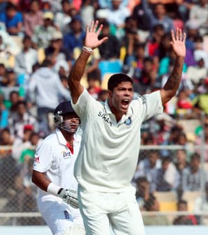 Pragyan Ojha not only took 5 wickets in England's first innings but also was the pick of all the bowlers in the match, till now that is. His morning spell to Kevin Pietersen was one that all Test connoisseurs would not want to miss. KP skipped and hopped, run-outs were missed, stumping went abegging, fours were hit, Indian team would have begged for DRS and then Pietersen was finally bowled neck-and-crop. And then Ojha was also on a hat-trick after Ian Bell's moment of madness.