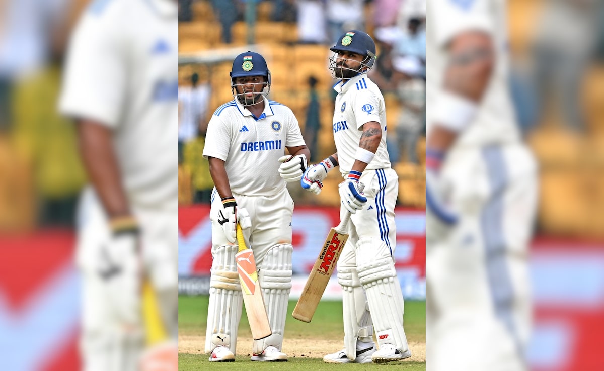 Sarfaraz Khan led the charge for India as it game a strong reply to new Zealand in the second innings of the first Test in Bengaluru. Sarfaraz (125, 154b) and Rishabh Pant (53, 56b) were at crease when an early lunch was taken due to rain. The duo milked 113 runs for the unbroken fourth wicket in just 22 overs. The sight of Rishabh Pant walking out to bat with Sarfaraz too might have calmed a lot of nerves in the Indian dressing room after the former missed the third day's play due to a blow he copped on his knee on the second day while ‘keeping.
