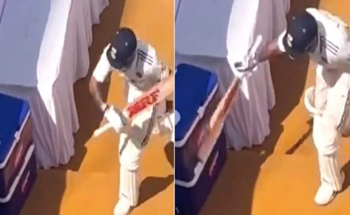 While the umpire gave out, Kohli took the DRS. Ball tracker showed that it was clipping the outer part of leg stump and Kohli was shocked. Kohli did not move intially before going out reluctantly. When he got out of the field he even smashed his bat on a box venting out his frustration.