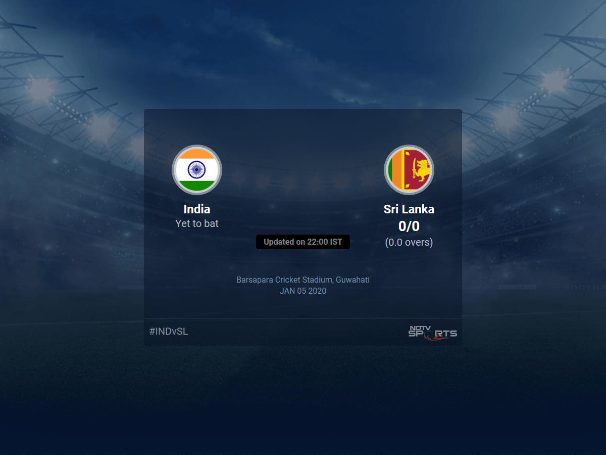 A dedicated team of experts bring you live score, live cricket score, live match update on Sports.NDTV.com. After 0.0 overs, Sri Lanka are 0/0. The live updates of India vs Sri Lanka scorecard is also available. It is the perfect platform to follow your favourite teams in India vs Sri Lanka, 2019/20. Keep a track on your favourite batsmen and bowlers through India vs Sri Lanka, 2019/20 today match, ball by ball commentary, India vs Sri Lanka, India vs Sri Lanka live score, India vs Sri Lanka scorecard. Follow the excitement of the India vs Sri Lanka, 2019/20 on Sports.NDTV.com as you can follow live match updates and live cricket score through our platform.
