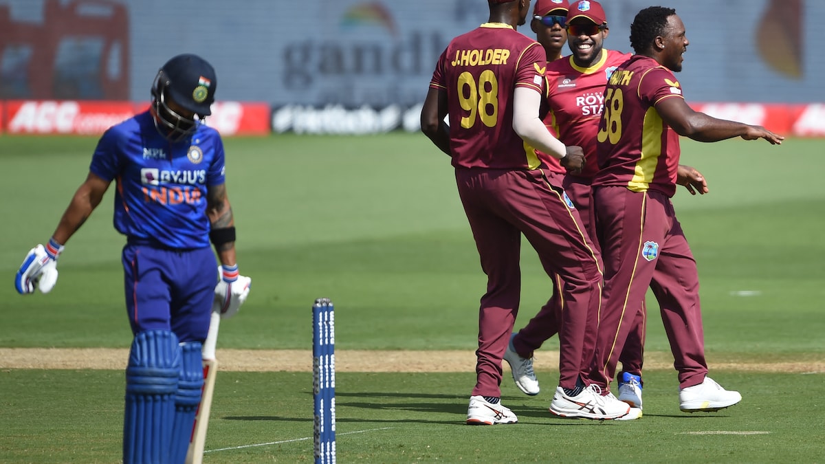 Former India cricketers Laxman Sivaramakrishnan and Murali Kartik analysed Virat Kohli's dismissal in the 2nd ODI against West Indies at the Narendra Modi Stadium in Ahmedabad on Wednesday. Kohli, who hasn't been at his best of late, was once again out flashing outside the off-stump to a medium pacer. Odean Smith, who came into the West Indies XI after regular captain Kieron Pollard was unavailable due to a niggle, gave India a body blow by picking the wickets of Rishabh Pant and Virat Kohli in the same over. While Pant was out trying heave a delivery from way outside the off stump, Kohli edged a wide one to the keeper in the last ball of the 12th over. Edging the ball to the slip cordon while chasing fuller length deliveries outside the off stump, has been one of the most common modes of dismissals for the former India captain.