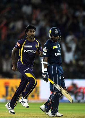 While Gautam Gambhir and Jacques Kallis were steering the chase, Knight Riders were in control. Then Gambhir mis-hit Anand Rajan to mid-off, leaving his team on 64 for 3 in 9.5 overs. Yusuf Pathan clouted one six off the spinner Ankit Sharma before trying to slog the next ball and getting bowled. Kallis, however, stayed calm and in the company of Manoj Tiwary took Knight Riders slowly but steadily towards their target. (Also see: Match highlights in pics)