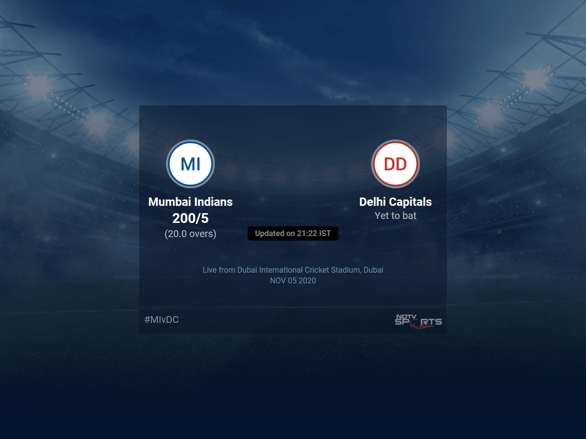 - Mumbai Indians vs Delhi Capitals: IPL 2020 Live Cricket Score, Live Score Of Today's Match on NDTV Sports