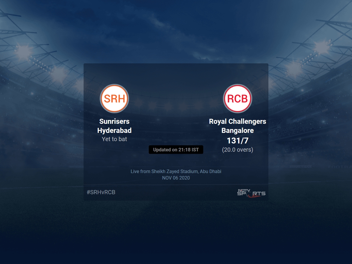 - Sunrisers Hyderabad vs Royal Challengers Bangalore: IPL 2020 Live Cricket Score, Live Score Of Today's Match on NDTV Sports
