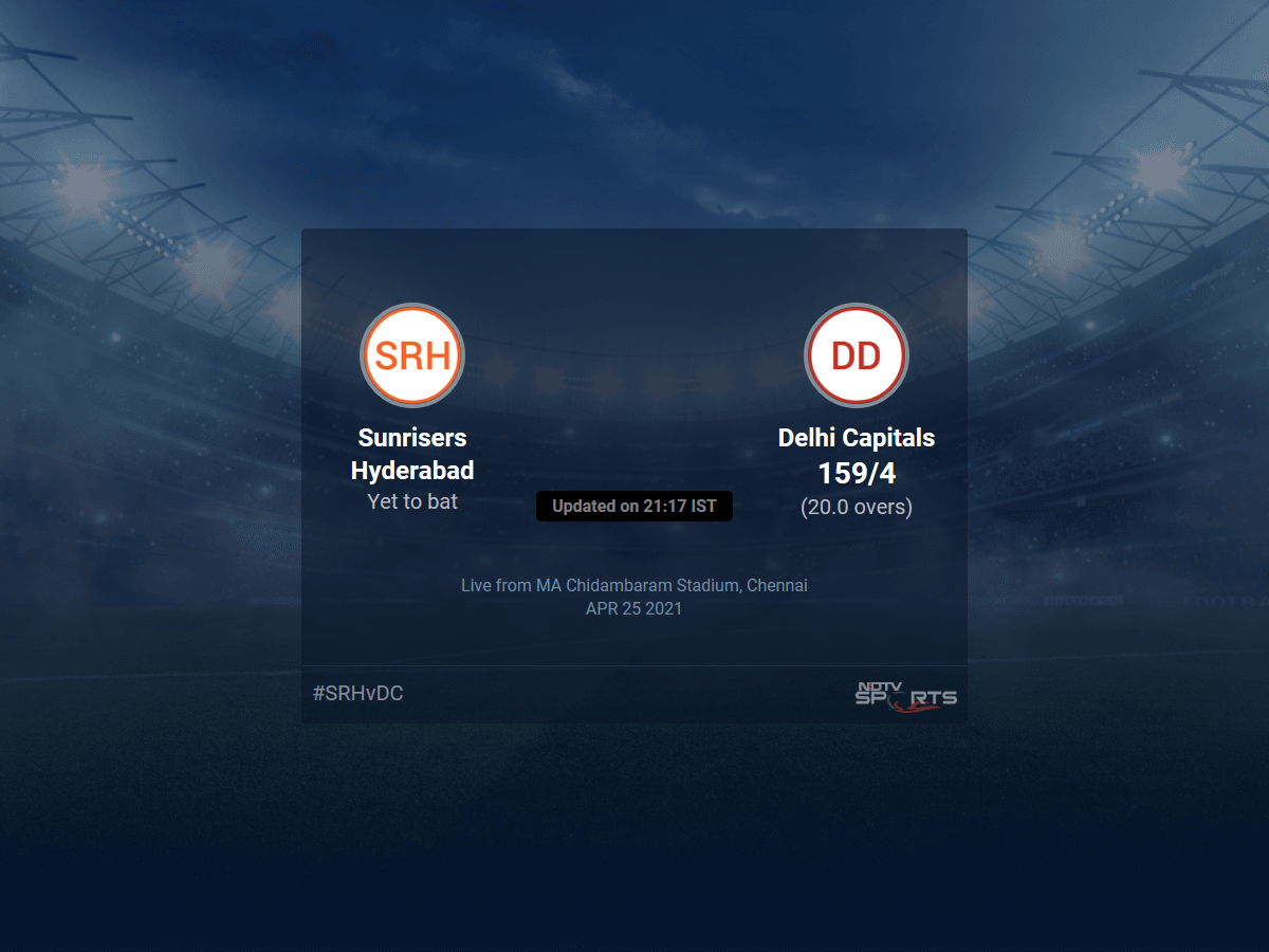 - Sunrisers Hyderabad vs Delhi Capitals Live Score Ball by Ball, IPL 2021 Live Cricket Score Of Today's Match on NDTV Sports