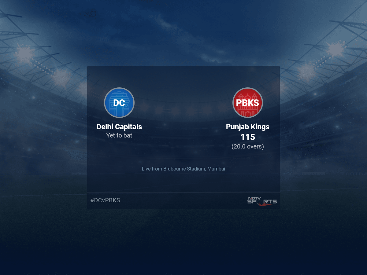A dedicated team of experts bring you live score, live cricket score, live match update on Sports.NDTV.com. After 20.0 overs, Punjab Kings are 115. The live updates of Delhi Capitals vs Punjab Kings scorecard is also available. It is the perfect platform to follow your favourite teams in Indian Premier League 2022. Keep a track on your favourite batsmen and bowlers through Indian Premier League 2022 today match, ball by ball commentary, Delhi Capitals vs Punjab Kings, Delhi Capitals vs Punjab Kings live score, Delhi Capitals vs Punjab Kings scorecard. Follow the excitement of the Indian Premier League 2022 on Sports.NDTV.com as you can follow live match updates and live cricket score through our platform.