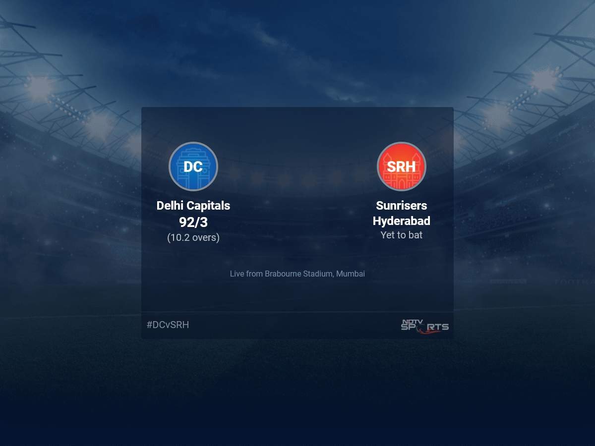 Follow the Indian Premier League 2022 live cricket score on Sports.NDTV.com. After 10.2 overs, Delhi Capitals are 92/3. Get live score, ball by ball commentary and much more. Keep track of Indian Premier League 2022 today match between Delhi Capitals and Sunrisers Hyderabad. Everything related to Delhi Capitals and Sunrisers Hyderabad match will be available on Sports.NDTV.com. Stay updated with Delhi Capitals vs Sunrisers Hyderabad live score. Do check for Delhi Capitals vs Sunrisers Hyderabad scorecard. You can get scorecard updates, match related facts. Get quick live updates with ads, Sports.NDTV.com, which is the perfect destination for live cricket score.