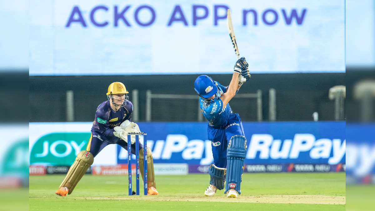 Making his Indian Premier League (IPL) debut, Dewald Brevis announced his arrival to fans with a short cameo in Mumbai Indians' (MI) IPL 2022 fixture vs Kolkata Knight Riders (KKR) on Wednesday, at the Maharashtra Cricket Association Stadium in Pune. The youngster also played a no-look shot which reminded fans of legendary cricketer AB de Villiers. Receiving a drifting delivery from Varun Chakaravarthy in the eighth over, Brevis did not look up and slammed it over deep mid-wicket for a no-look maximum!