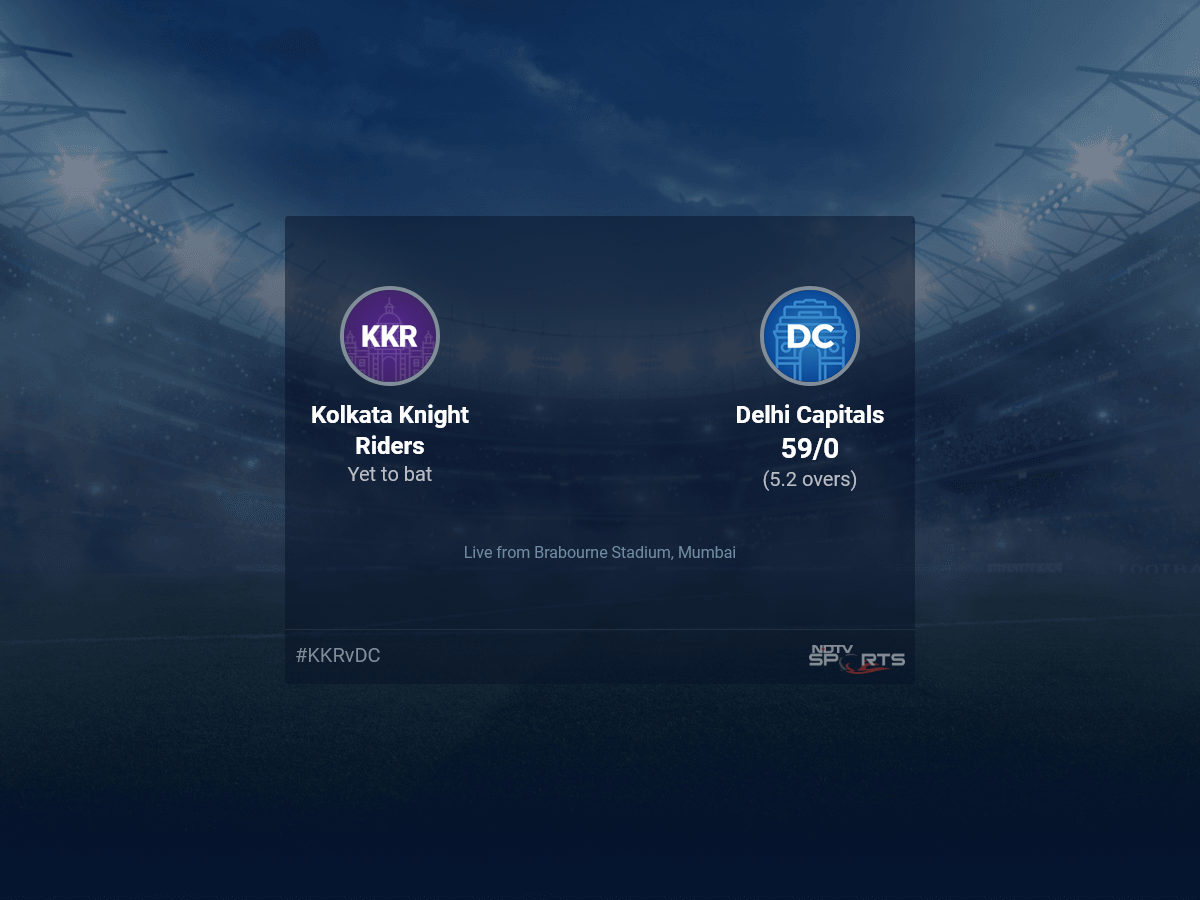 Follow the Indian Premier League 2022 live cricket score on Sports.NDTV.com. After 5.2 overs, Delhi Capitals are 59/0. Get live score, ball by ball commentary and much more. Keep track of Indian Premier League 2022 today match between Kolkata Knight Riders and Delhi Capitals. Everything related to Kolkata Knight Riders and Delhi Capitals match will be available on Sports.NDTV.com. Stay updated with Kolkata Knight Riders vs Delhi Capitals live score. Do check for Kolkata Knight Riders vs Delhi Capitals scorecard. You can get scorecard updates, match related facts. Get quick live updates with ads, Sports.NDTV.com, which is the perfect destination for live cricket score.