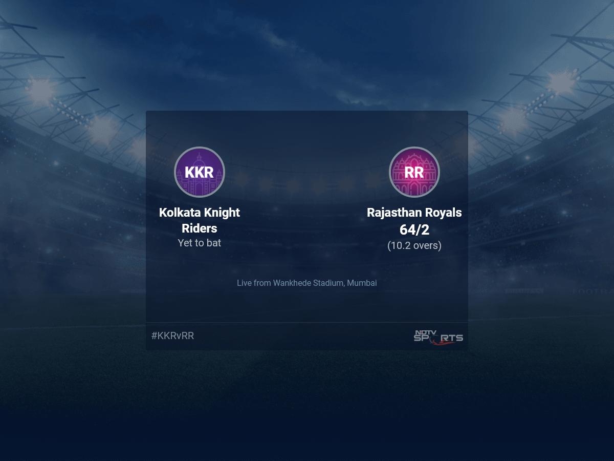 Follow the Indian Premier League 2022 live cricket score on Sports.NDTV.com. After 10.2 overs, Rajasthan Royals are 64/2. Get live score, ball by ball commentary and much more. Keep track of Indian Premier League 2022 today match between Kolkata Knight Riders and Rajasthan Royals. Everything related to Kolkata Knight Riders and Rajasthan Royals match will be available on Sports.NDTV.com. Stay updated with Kolkata Knight Riders vs Rajasthan Royals live score. Do check for Kolkata Knight Riders vs Rajasthan Royals scorecard. You can get scorecard updates, match related facts. Get quick live updates with ads, Sports.NDTV.com, which is the perfect destination for live cricket score.