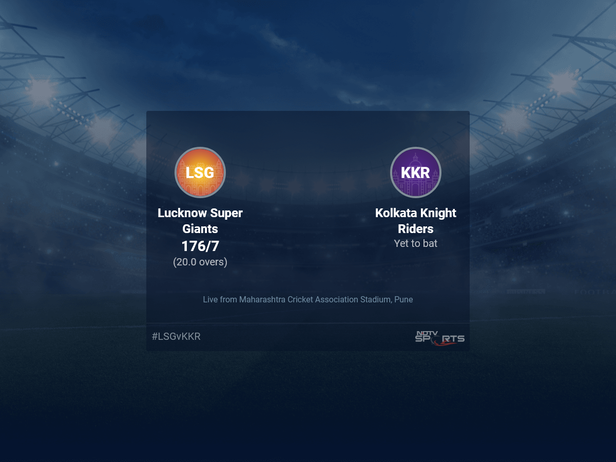 A dedicated team of experts bring you live score, live cricket score, live match update on Sports.NDTV.com. After 20.0 overs, Lucknow Super Giants are 176/7. The live updates of Lucknow Super Giants vs Kolkata Knight Riders scorecard is also available. It is the perfect platform to follow your favourite teams in Indian Premier League 2022. Keep a track on your favourite batsmen and bowlers through Indian Premier League 2022 today match, ball by ball commentary, Lucknow Super Giants vs Kolkata Knight Riders, Lucknow Super Giants vs Kolkata Knight Riders live score, Lucknow Super Giants vs Kolkata Knight Riders scorecard. Follow the excitement of the Indian Premier League 2022 on Sports.NDTV.com as you can follow live match updates and live cricket score through our platform.