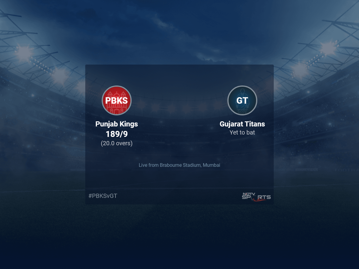 A dedicated team of experts bring you live score, live cricket score, live match update on Sports.NDTV.com. After 20.0 overs, Punjab Kings are 189/9. The live updates of Punjab Kings vs Gujarat Titans scorecard is also available. It is the perfect platform to follow your favourite teams in Indian Premier League 2022. Keep a track on your favourite batsmen and bowlers through Indian Premier League 2022 today match, ball by ball commentary, Punjab Kings vs Gujarat Titans, Punjab Kings vs Gujarat Titans live score, Punjab Kings vs Gujarat Titans scorecard. Follow the excitement of the Indian Premier League 2022 on Sports.NDTV.com as you can follow live match updates and live cricket score through our platform.