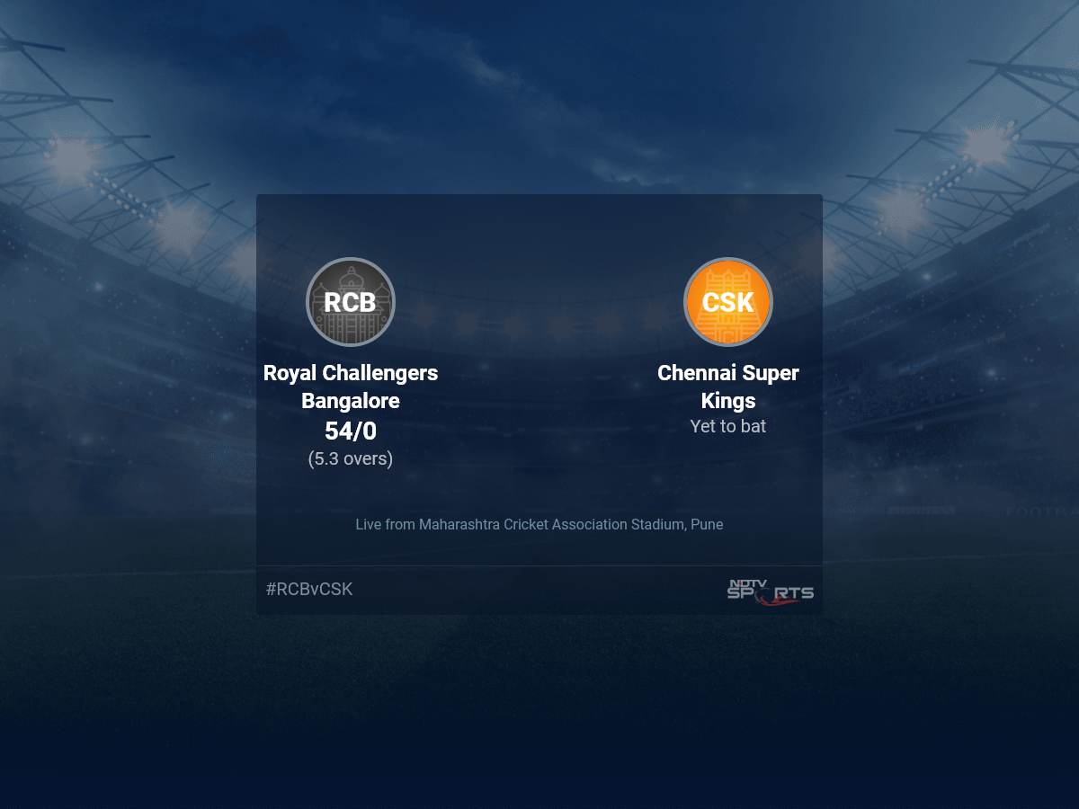 Live Updates of Today Match between Royal Challengers Bangalore vs Chennai Super Kings from Maharashtra Cricket Association Stadium, Pune. Check commentary and full scoreboard of the match.