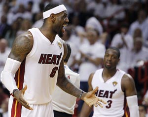 After another basket by James, the Thunder had one last burst - haven't they always in this series? - ripping off six straight points to get within one before Bosh made a pair of free throws with 1:19 to play. Durant missed badly on a wild shot attempt, and the Thunder missed another chance when Westbrook was off from behind the arc. James hit a free throw for a four-point lead with 16 seconds to go and Wade added two to close it out.