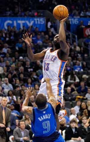 James Harden had 13 points, seven rebounds and five assists, Russell Westbrook added 12 points and the Thunder beat the Mavericks for the second time in three days, winning 87-83 on Tuesday night.