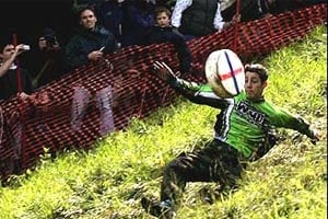 Even more curious events include cheese rolling in Gloucestershire, southwest England, in which competitors chase a giant round of Double Gloucester cheese down a steep hill, risking injury.