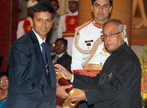 Rahul Dravid receives Padma Bhushan from President Pranab Mukherjee