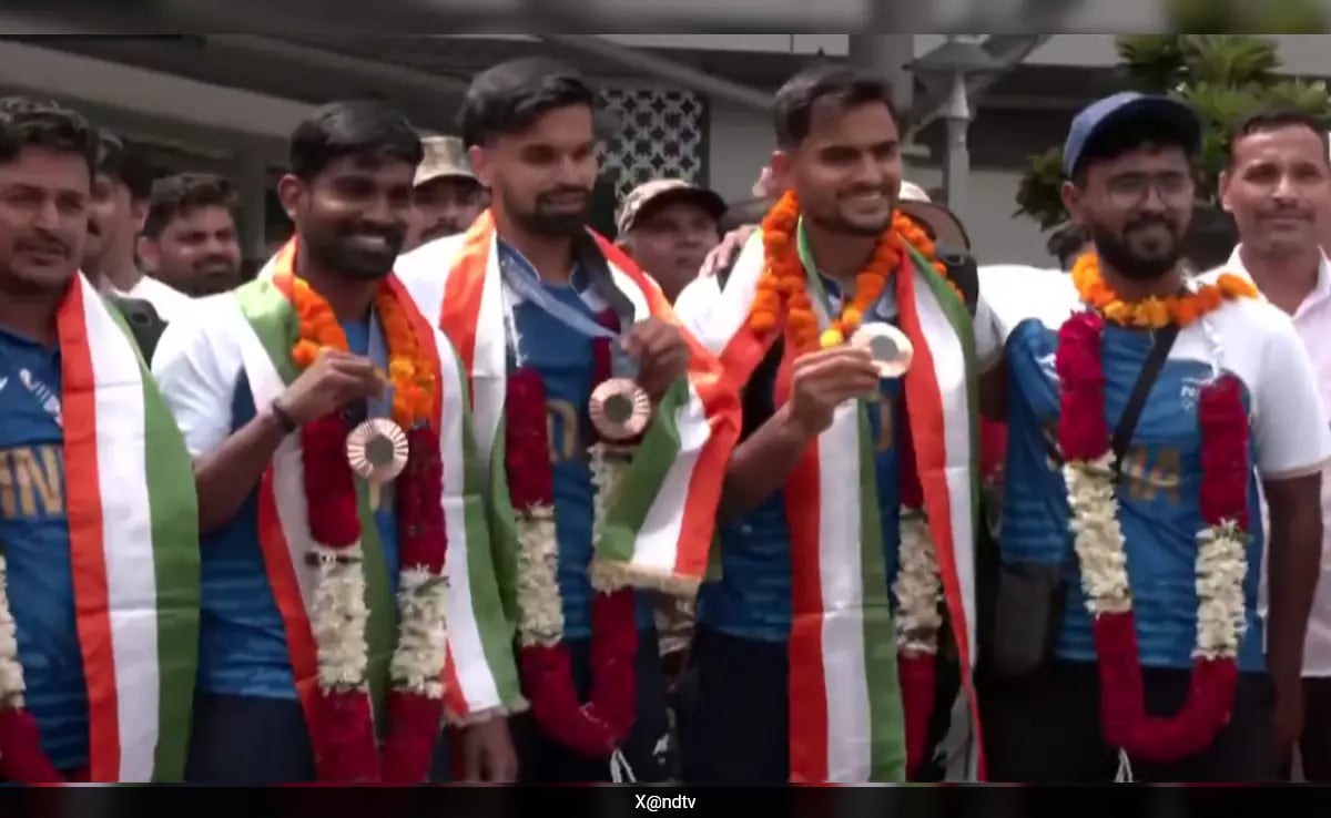 #Watch | Indian men's hockey team returned to Delhi today after winning a bronze medal in the #ParisOlympics pic.twitter.com/XiuqBedEHB