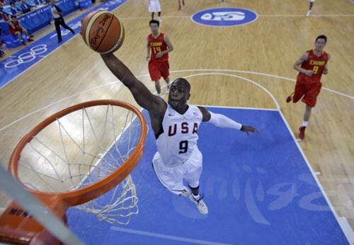 Team USA's Dwyane Wade dunks against China during men's basketball game at the Beijing 2008 Olympics in Beijing.