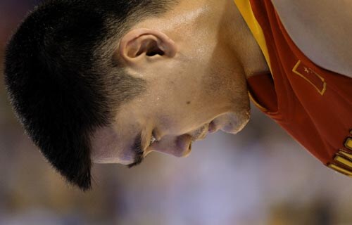 China's Yao Ming pauses during a men's basketball game against Team USA at the Beijing 2008 Olympics in Beijing.