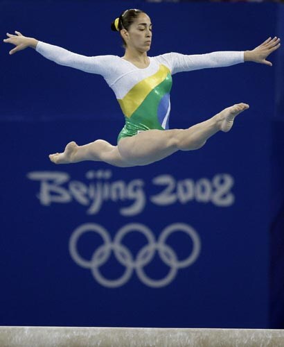 Brazil's gymnast Daniele Hypolito performs on the balance beam during the women's qualification rounds at the Beijing 2008 Olympics in Beijing.