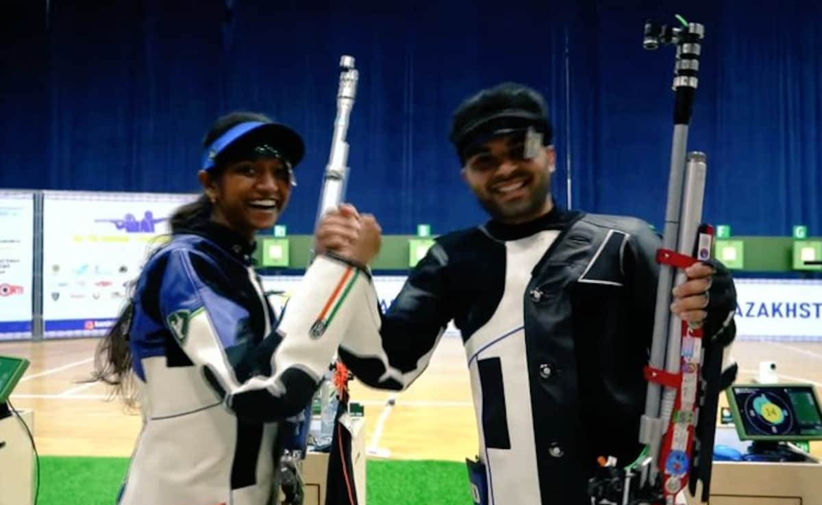 India's Arjun Babuta and Elavenil Valarivan bagged the gold medal in 10m air rifle mixed team event of 16th Asian Shooting Championship in Shymkent, Kazakhstan on Saturday.