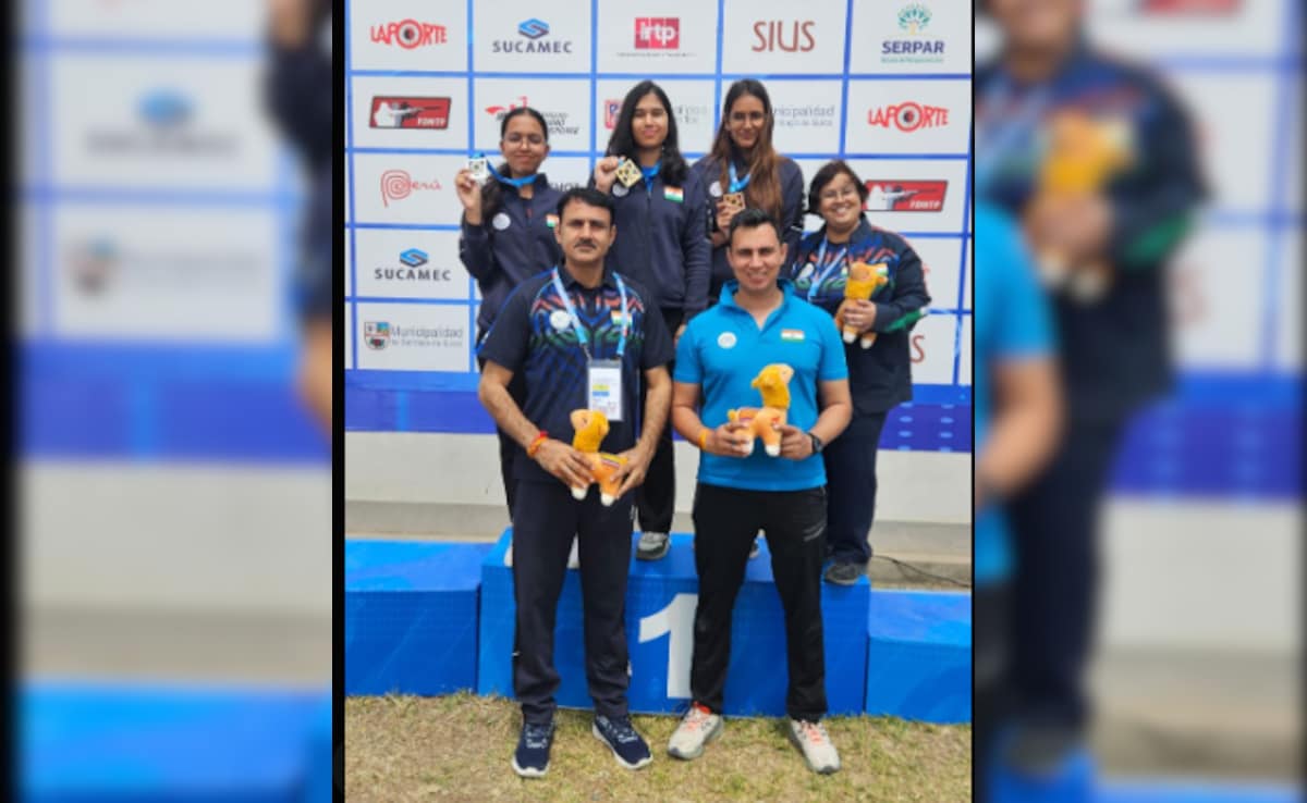 Manvi Jain completed the Indian sweep with a bronze-winning score of 557, marking India's first-ever clean sweep in this competition.