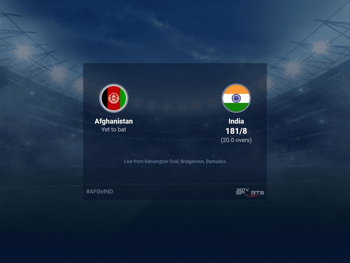 - Afghanistan vs India Live Score Ball by Ball, T20 World Cup 2024 Live Cricket Score Of Today's Match on NDTV Sports