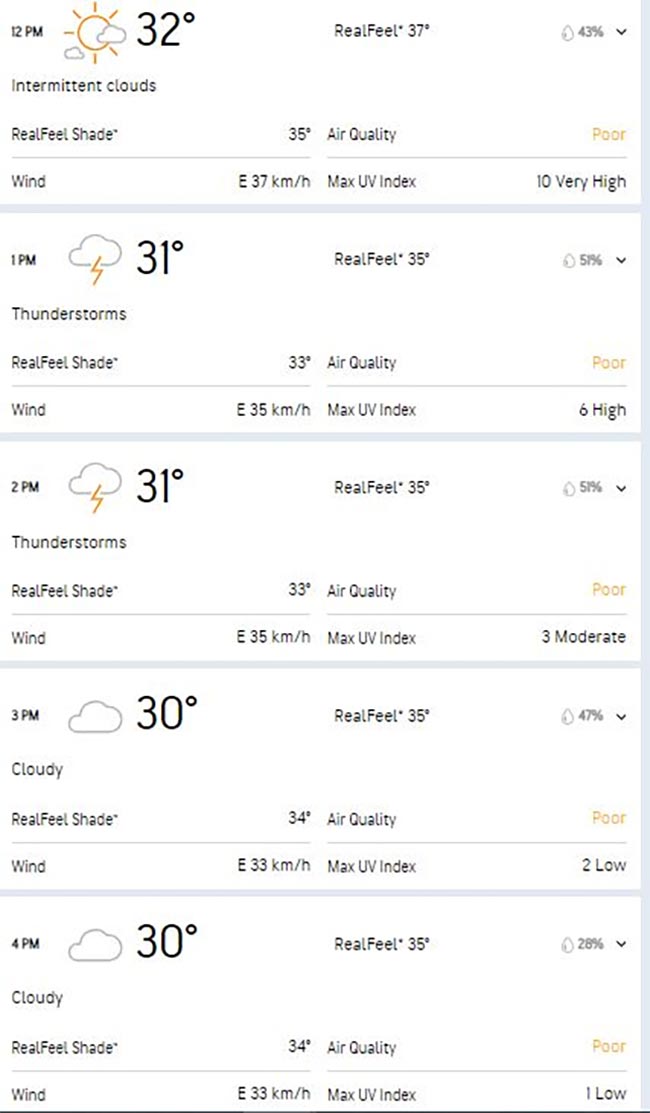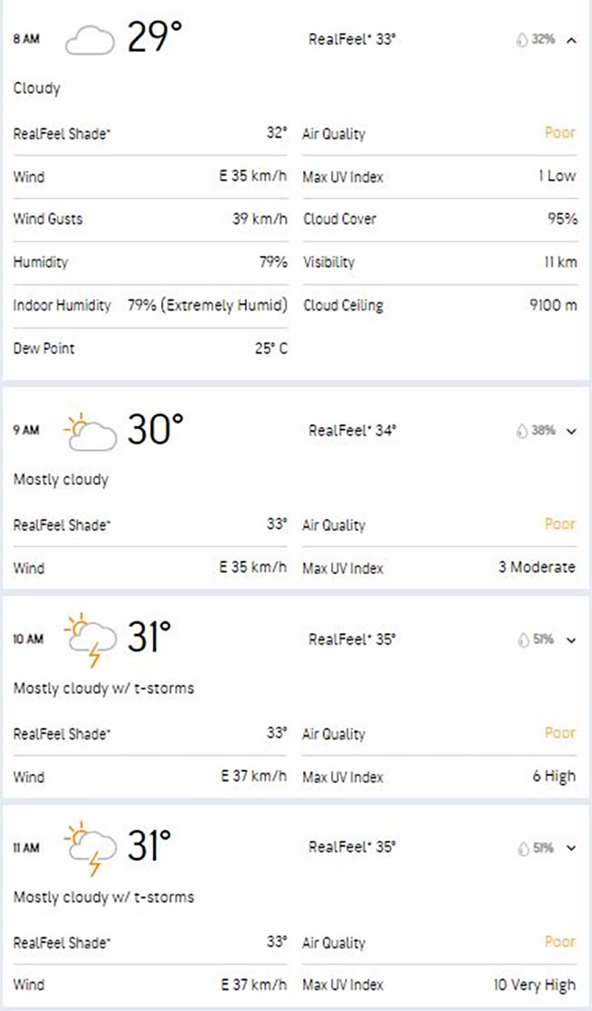 According to AccuWeather, there is around 50 per cent chance of rainfall during the toss and starting hour of India vs South Africa final. The condition will improve to 43 per cent chance of rainfall at around 9:30 PM IST but it will cross the 50 per cent mark in the next two hours.