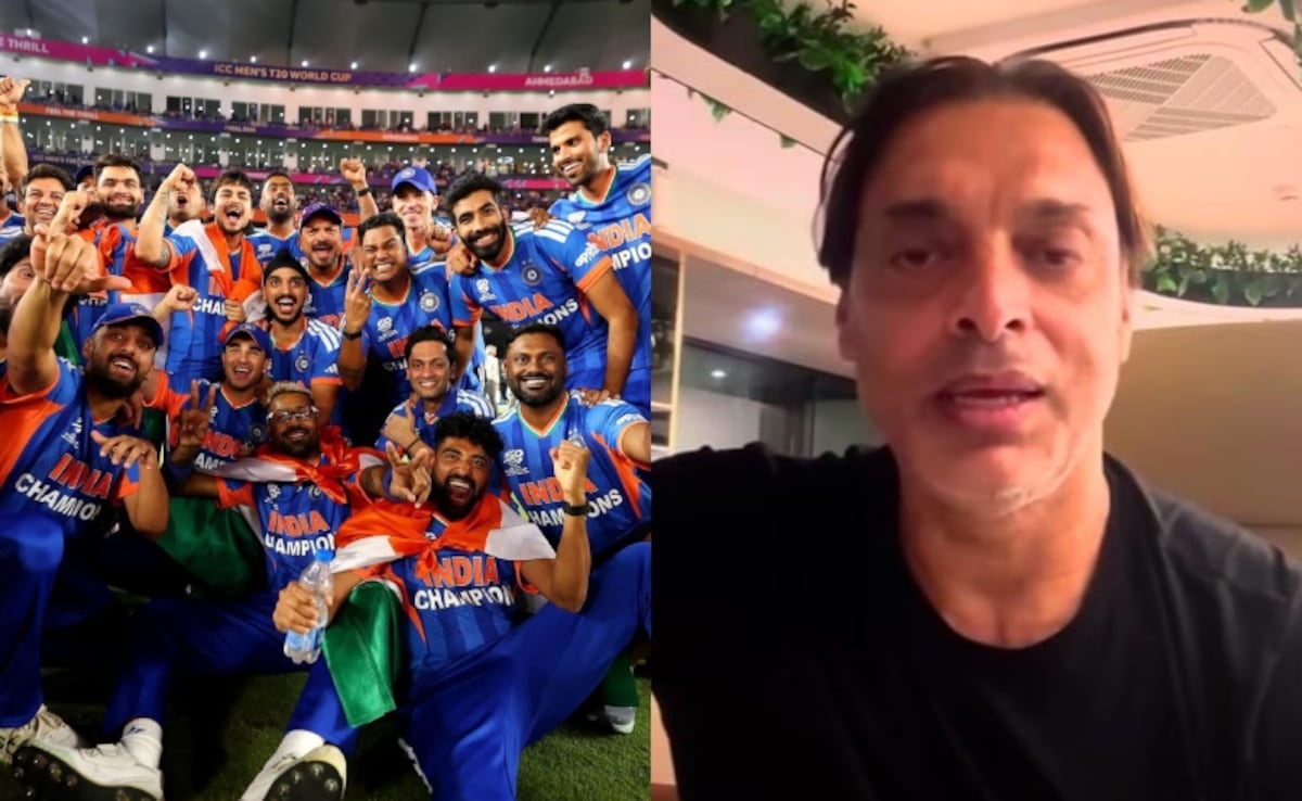 Former Pakistan pacer Shoaib Akhtar had a hilarious take on India's dominant performance in the recently concluded T20 World Cup. Under the leadership of Suryakumar Yadav, India hammered New Zealand by 96 runs in the final on Sunday to lift a record third T20 World Cup trophy. Throughout the tournament, India barely put a foot wrong, barring a sole defeat to South Africa in the Super 8, dispatching their opponents with clinical dominance and panache. Speaking on the 'Game On Hai' show on PTV Sports, Akhtar compared India's dominance to a neighborhood power dynamic.