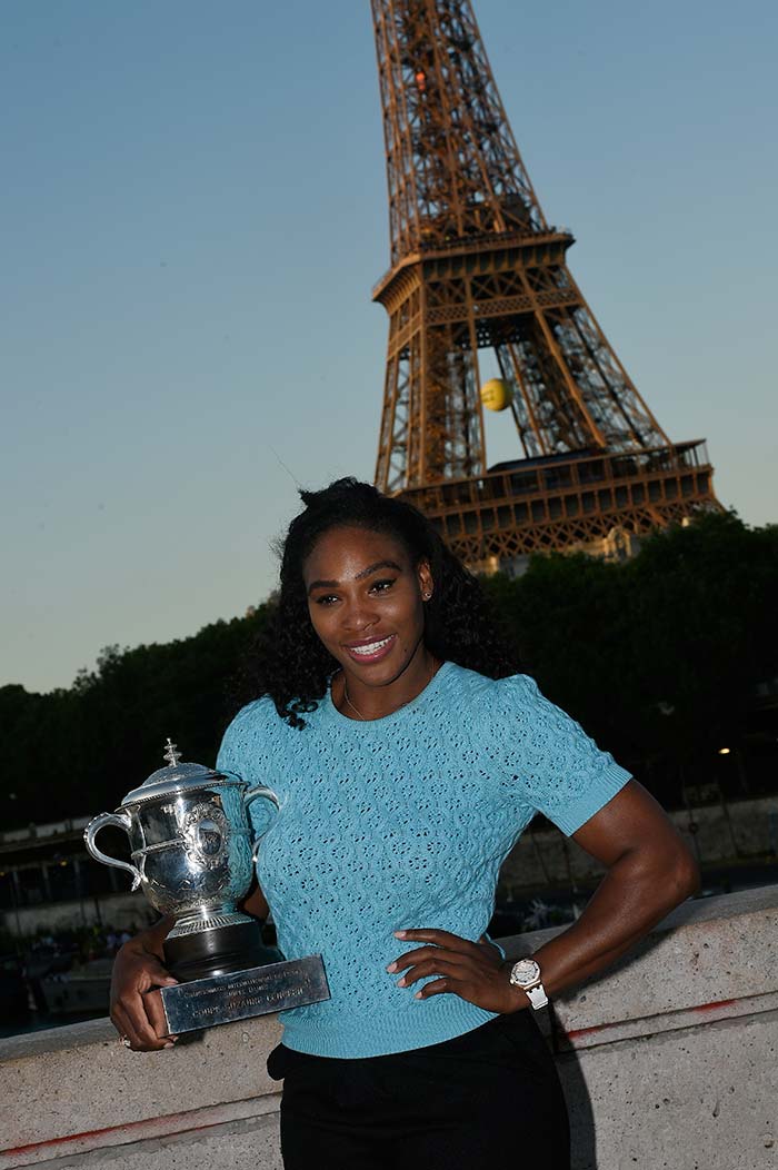 With Eiffel Tower Behind, Serena Williams Flaunts French Open Trophy