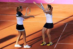 Ukraine's Olga Savchuk and Lesia Tsurenko saved two match points in the second set before beating Jarmila Groth and Anastasia Rodionova of Australia 0-6, 7-6 (3), 6-3 Sunday in the deciding doubles match of their Fed Cup World Group playoff.