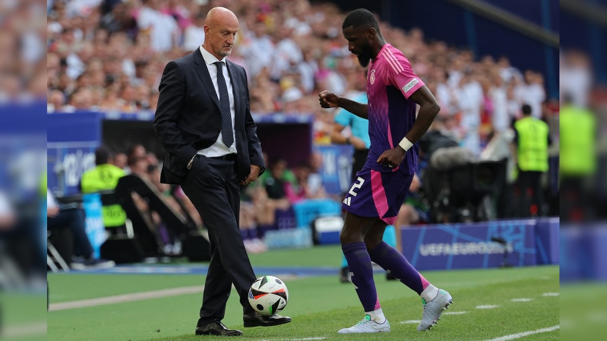 Hungary coach Marco Rossi criticised the decision to allow Germany's opening goal as his side lost 2-0 to the Euro 2024 hosts in Stuttgart on Wednesday. Jamal Musiala gave Germany the lead in the first half after he was set up by Ilkay Gundogan, but Hungary players were incensed a foul was not given for a challenge on defender Willi Orban. "I've never complained in my career as a player or coach, I've never looked for excuses, but what the referee did tonight... the referee used a double standard," said Rossi.