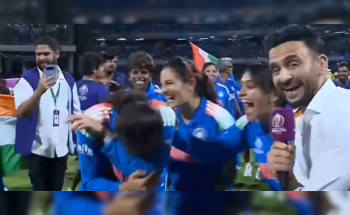 Mandhana had no choice but to leave her interview midway and join her team in celebrating India's historic moment.