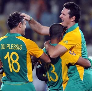 Things got too tight in the 43rd over when Harbhajan slipped a quick delivery down the leg side, past the advancing Duminy, and though Dhoni fumbled the take, he recovered to finish the stumping. India tightened the screws further when Munaf trapped Morne van Wyk in the 44th over, just moments after Gautam Gambhir dropped van Wyk at deep midwicket.