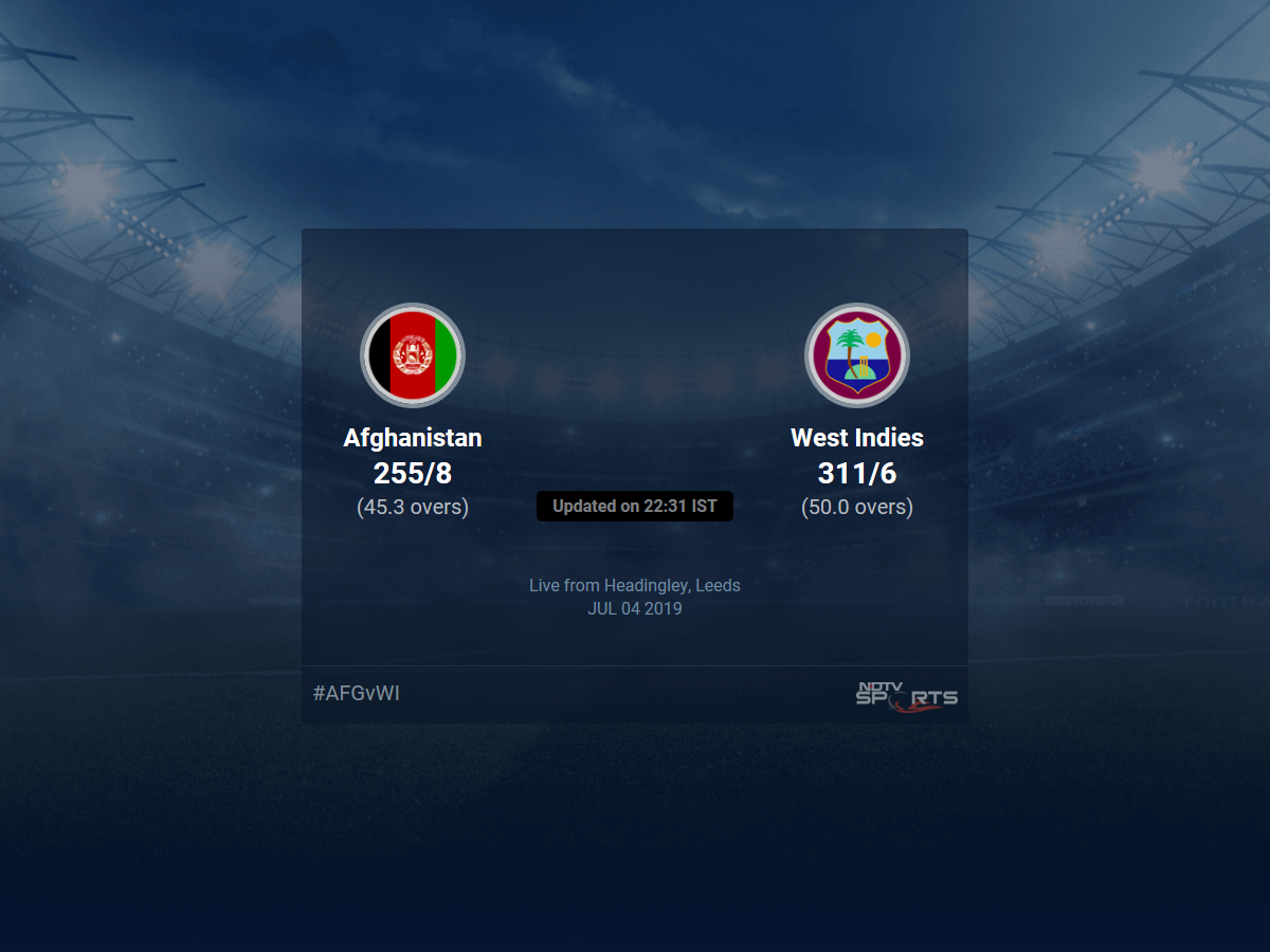 Live Updates of Today Match between Afghanistan vs West Indies from Headingley, Leeds. Check commentary and full scoreboard of the match.