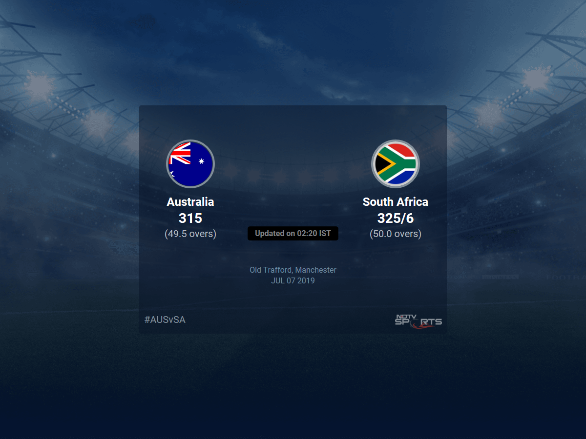 Live Updates of Today Match between Australia vs South Africa from Old Trafford, Manchester. Check commentary and full scoreboard of the match.