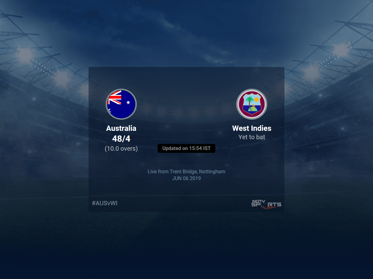 Live Updates of Today Match between Australia vs West Indies from Trent Bridge, Nottingham. Check commentary and full scoreboard of the match.