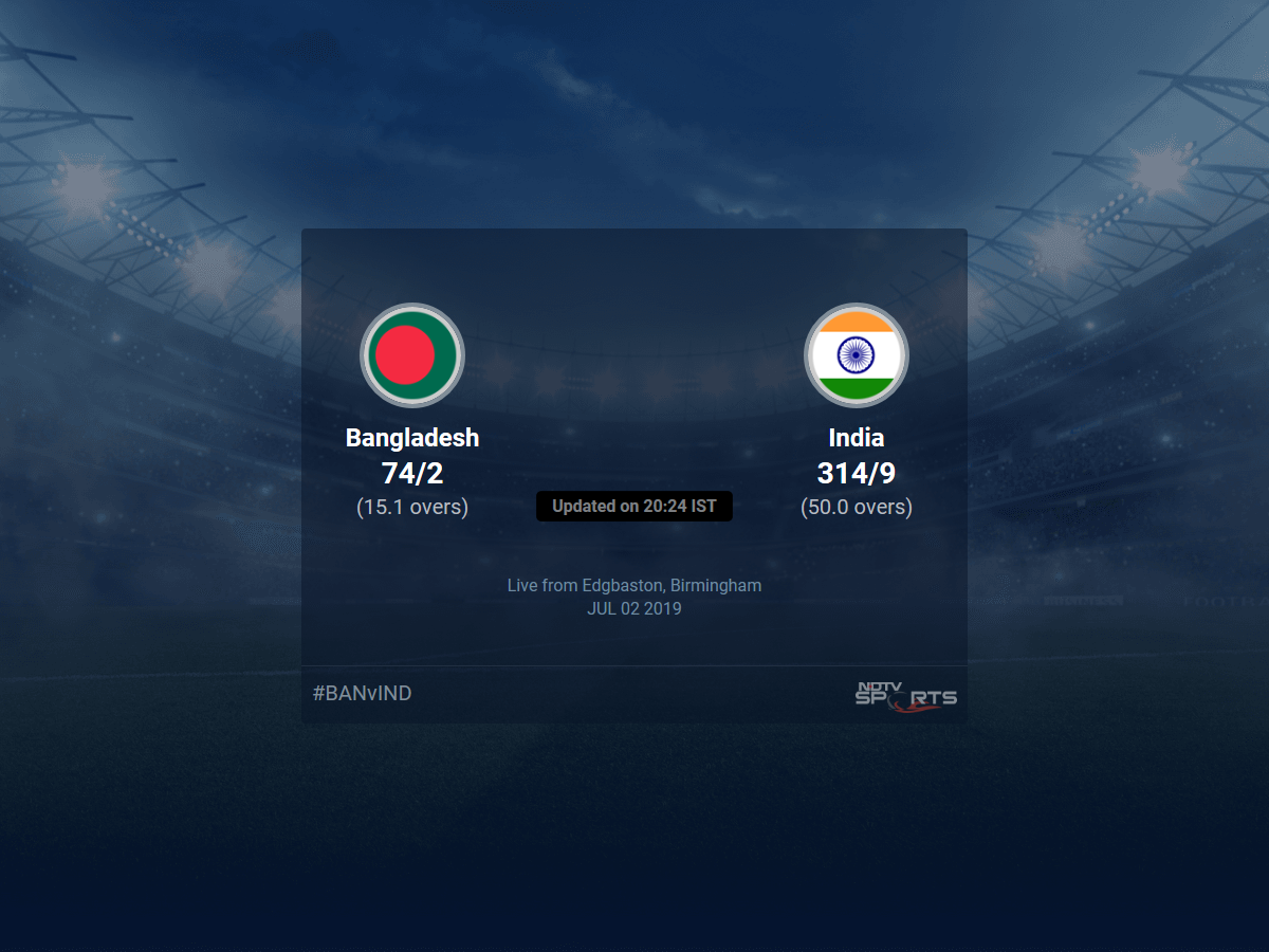 Live Updates of Today Match between Bangladesh vs India from Edgbaston, Birmingham. Check commentary and full scoreboard of the match.