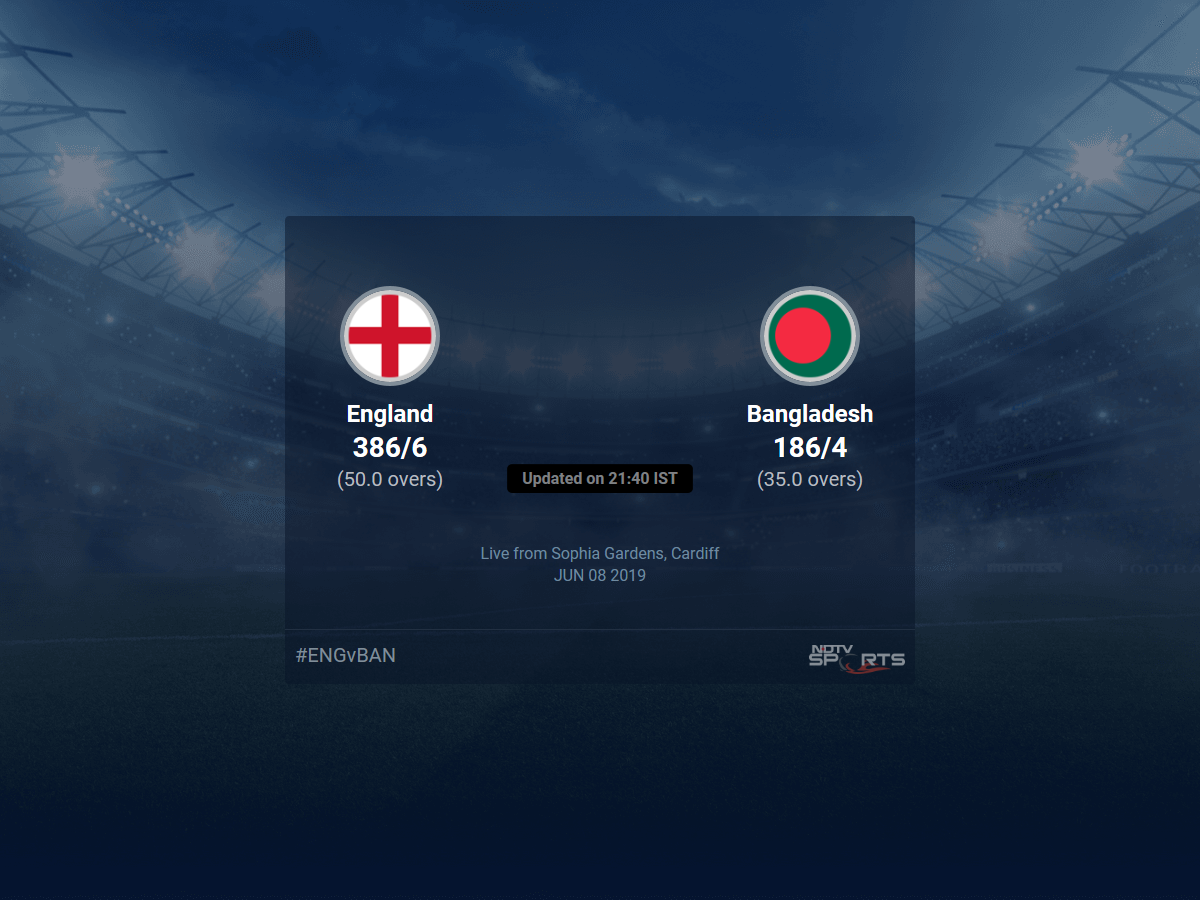 Live Updates of Today Match between England vs Bangladesh from Sophia Gardens, Cardiff. Check commentary and full scoreboard of the match.