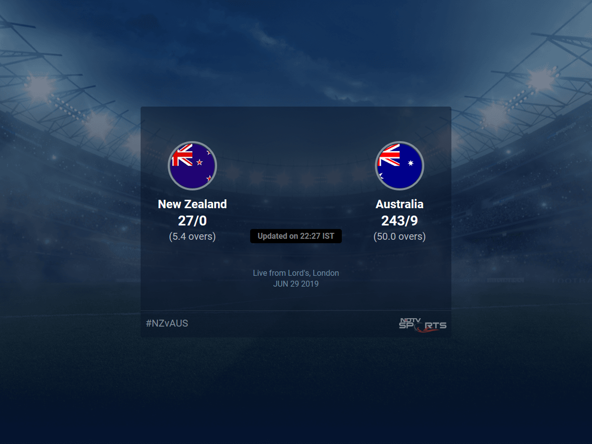 Live Updates of Today Match between New Zealand vs Australia from Lord's, London. Check commentary and full scoreboard of the match.