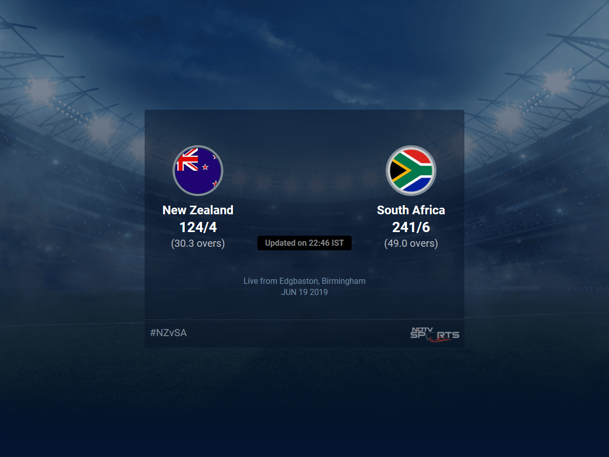 Live Updates of Today Match between New Zealand vs South Africa from Edgbaston, Birmingham. Check commentary and full scoreboard of the match.