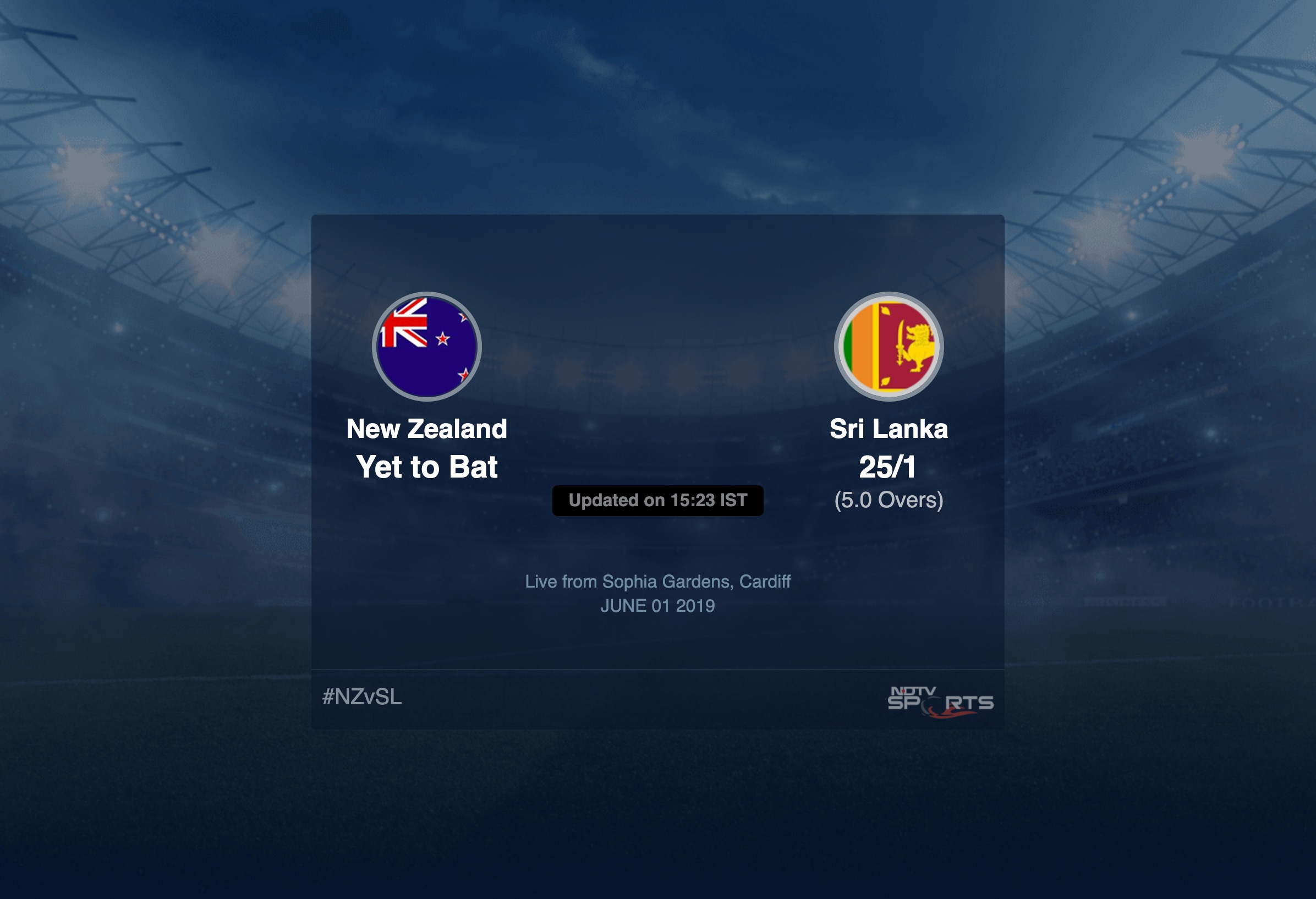 Live Updates of Today Match between New Zealand vs Sri Lanka from Sophia Gardens, Cardiff. Check commentary and full scoreboard of the match.