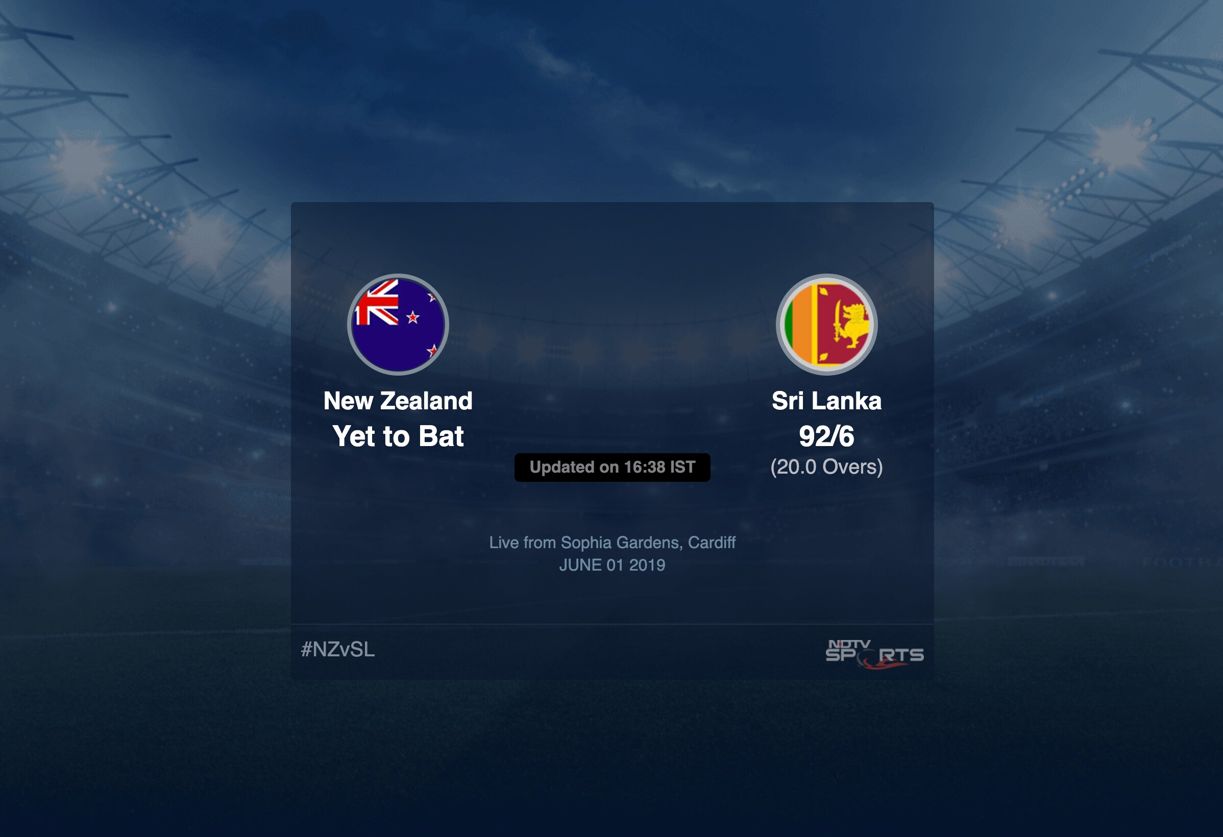 Live Updates of Today Match between New Zealand vs Sri Lanka from Sophia Gardens, Cardiff. Check commentary and full scoreboard of the match.